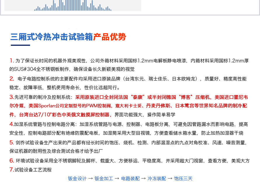產品型號:JQTS3-408 品牌:劍 喬 用途:用途:三箱式冷熱沖擊試驗箱又名溫度沖擊試驗或高低溫沖擊試驗是用于考核產品對周圍環境溫度急劇變化的適應性,裝備設計定型的鑒定試驗和批產階段的例行試驗中不可缺少的試驗
